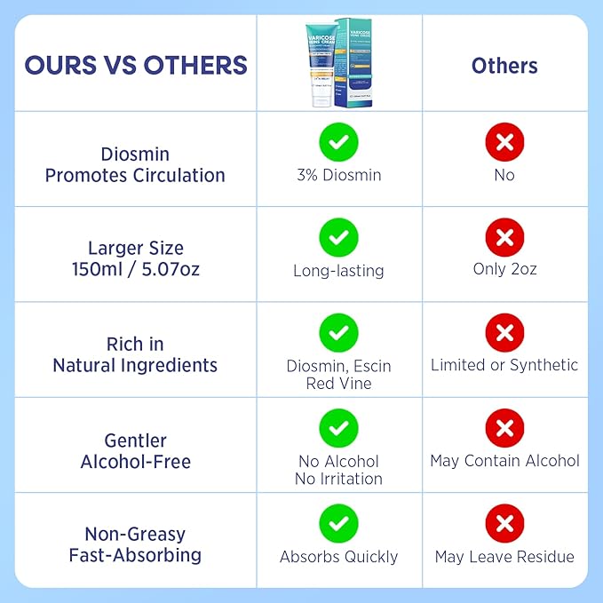 - Varicose Veins Cream Moisturizing & Quick to Absorb: Cruelty-free and vegan-friendly, natural plant-based formula, Our varicose veins cream for leg varices cream features a moisturizing, refreshing, and absorbs quickly.