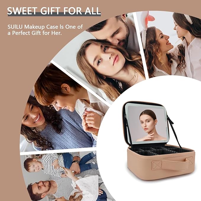 - 【ideal perfect gift】SUILU makeup bag with led mirror is the perfect gift for your wife, girl friend, mother, makeup lovers in any special days, such as mother's day, birthdays, valentine's day, halloween, anniversaries, christmas and more.it is not only storage your cosmetics, but also jewelry, electronic accessories, camera, essential oil, toiletries, shaving kit, valuable objects and so on.a must-have for your travels.