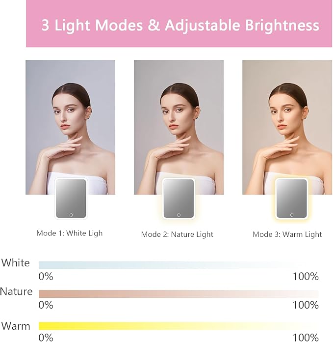 - 【makeup case with lighted mirror】large capacity travel makeup bag,the travel makeup bag with vanity mirror of led light 3 color setting. 0-100% adjustable brightness that can be switched. with a long press on the switch, and a short press can adjust the color temperature between cool, natural and warm light.the make up bag can protect your cosmetics well, whether you are traveling or be away on official business, you can take your dresser everywhere.