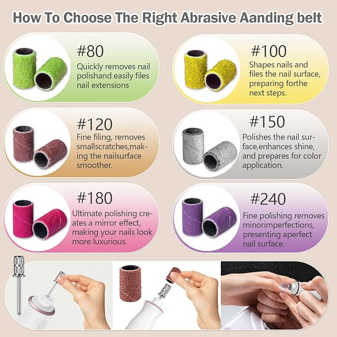 - 【Premium Quality & Support】Aleokut Professional Nail Drill Kit includes: 1* Electric Nail File, 10*Drill bits, 120*Sanding Bands, 1*Storage Bag, 1*Clear Dust Shield, 1*Nail Art Cleaning Brush, 1*USB-C Cable, 1* illustrated Manual. Backed by Aleokut's 12-month warranty + 30-day satisfaction guarantee. Our support team provides 24/7 troubleshooting for stress-free nail artistry.