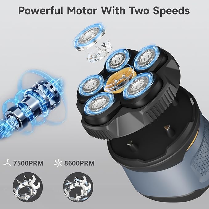 - 6D Floating Head Shaver : Men's electric shaver has 6 blades that easily reach all areas of the head to ensure a smooth shave of the head and face, including the neck and chin. The double durable blades are extremely sharp for a quick shave; the double-layer mesh provides protection to minimize irritation and the Smart Sensor System prevents hair pinching, and the 360° floating razor provides a precise, safe shave on both long and short hair.