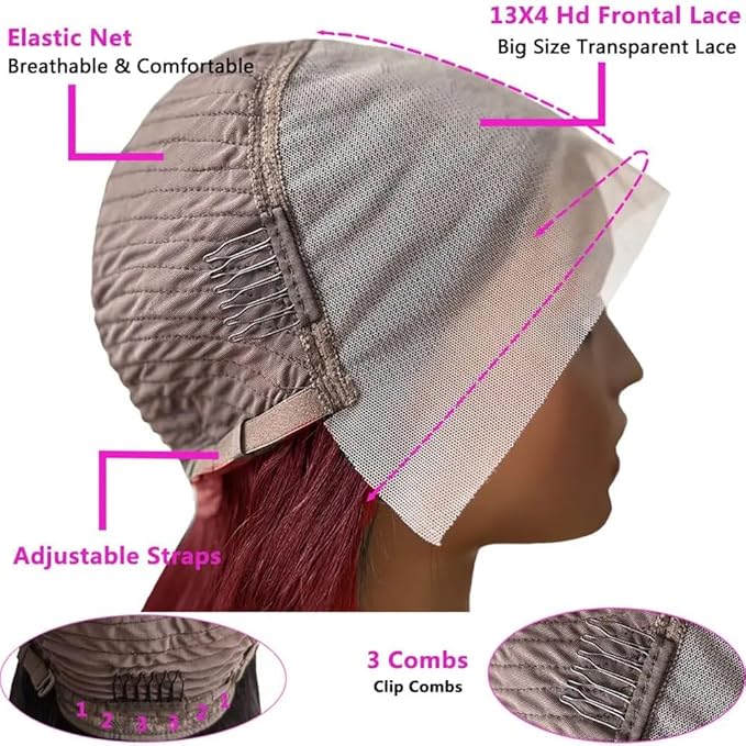 - Burgundy Bob wigs for black women human hair wig, Glueless design average wig cap one size for all with adjustable hook straps, and 3 comb clips at side and back help you secure your bob wigs when in Gym or swimming, wigs stay in place