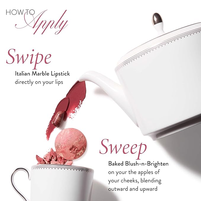 - HOW TO APPLY: Sweep Baked Blush-n-Brighten on the apples of your cheeks and blend outward and upward. Swipe Italian Marble Lipstick directly on your lips.