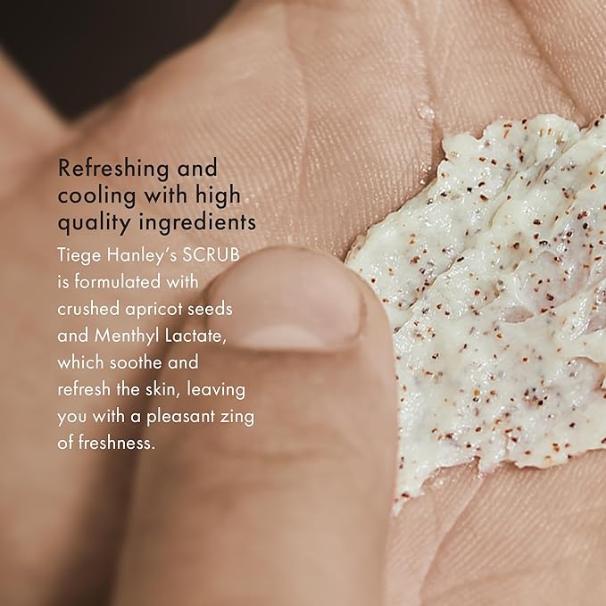 - Exfoliation: Tiege Hanley SCRUB is a facial exfoliant that helps clear pores of dirt while promoting new skin cell growth. Using an exfoliant twice a week helps make your skin glow and appear healthy by buffing away and removing dead skin cells. SCRUB allows your other skin care products to penetrate deeper into the skin and perform to their maximum potential. 2oz.
