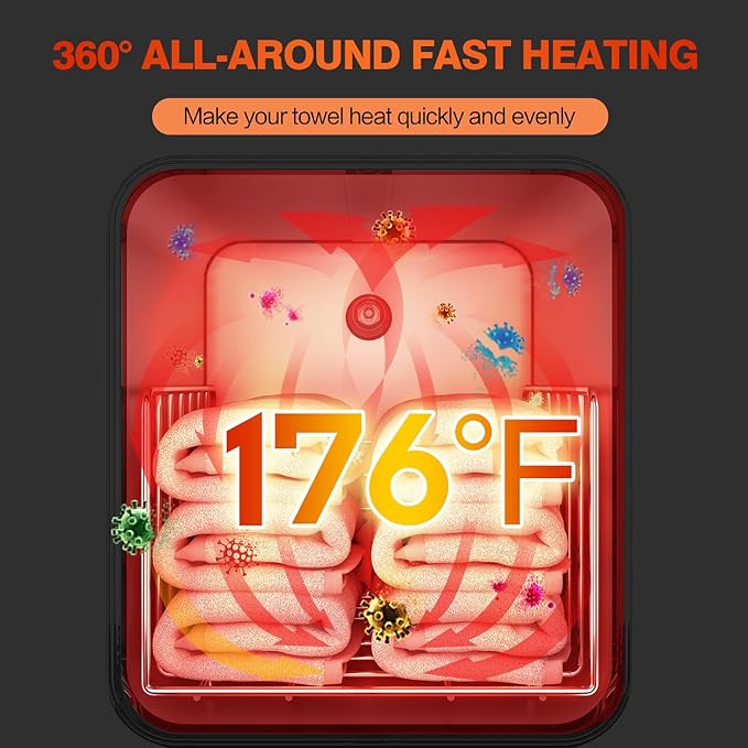 - Fast Heating - the towel heater has the function of fast heating. It only takes 10 minutes to heat the towel quickly and evenly to an average of 158 ℉.