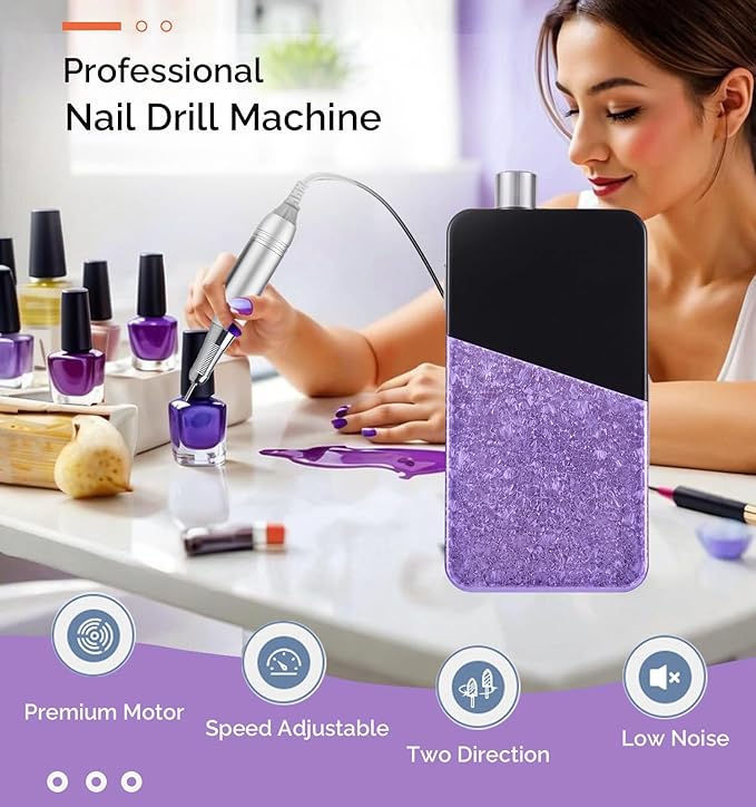 - Lightweight, Comfortable Design: Crafted with a durable aluminum alloy handpiece, our profeenail drill is designed for comfort. Lightweight and with effective heat dissipation, it minimizes vibration, reducing hand fatigue for a seamless and enjoyable experience.