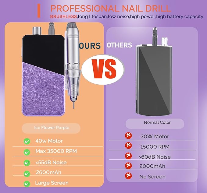 - Extended Battery Life for Continuous Use: Equipped with a powerful 2600mAh rechargeable lithium battery, this electric nail drill offers up to 8-10 hours of continuous usage on a single 2-hour charge. Enjoy uninterrupted nail care sessions with Lumcrissy's long-lasting power solution.