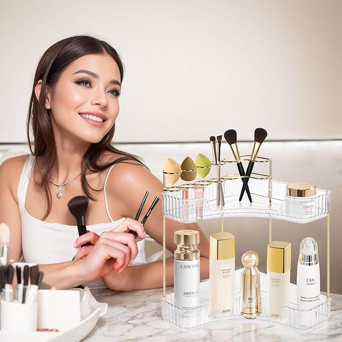 - 【Makeup Brush Holder】Do not need separate organizers for your makeup brushes and makeups anymore. Our 2-in-1 skincare organizer is the perfect solution that provides a convenient spot for beauty sponges, makeup brushes. Additionally, can also be used to store toothbrushes in the bathroom