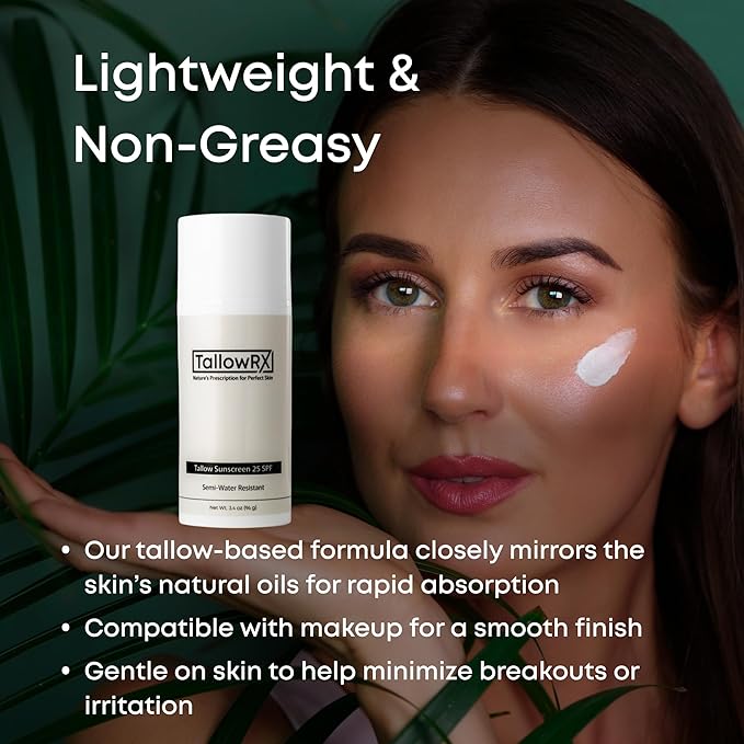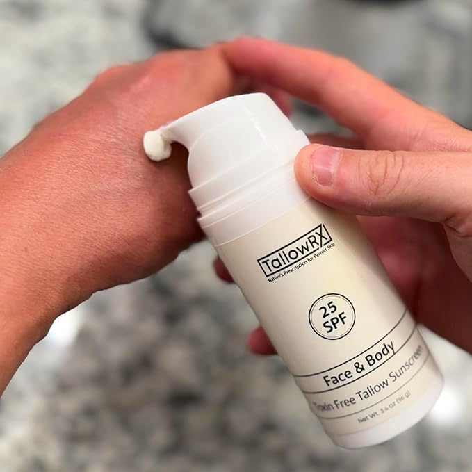 Tallow Sunscreen SPF 25 with Non Nano Zinc Oxide – Natural Mineral Sun Protection with Red Raspberry, Coconut Oil & Vit E – Reef Safe, Non Toxic & Moisturizing Sunblock for Face & Body – 3.4 oz