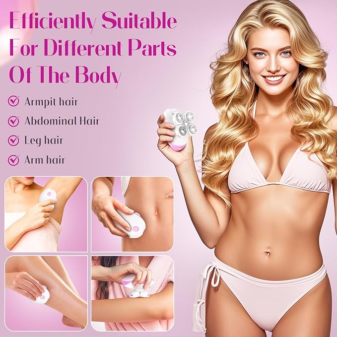- Quick & Efficient: With precision blades and a floating shaving head, this razor smoothly follows the contours of your face, body, and legs to remove unwanted hair. Ideal for legs, bikini line, arms, and ankles, it captures every hair with accuracy, leaving your skin flawless and residue-free.