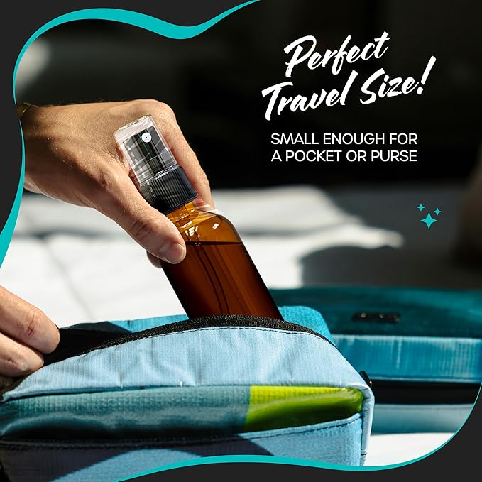 - Amber Spray Bottles 4 oz Size for Travel: Experience the Nevlers Amber Glass Bottle Bundle, which functions as an all-in-one portable atomizer spray bottle or essential oil spray bottle . The small spray bottle design fits conveniently in your pocket or purse. Whether used as mini spray bottles to freshen up your hair or body, these small spray bottles are stylishly handy for any occassion! Through form & function our versatile small glass bottles are perfect for home, the office or on the go.