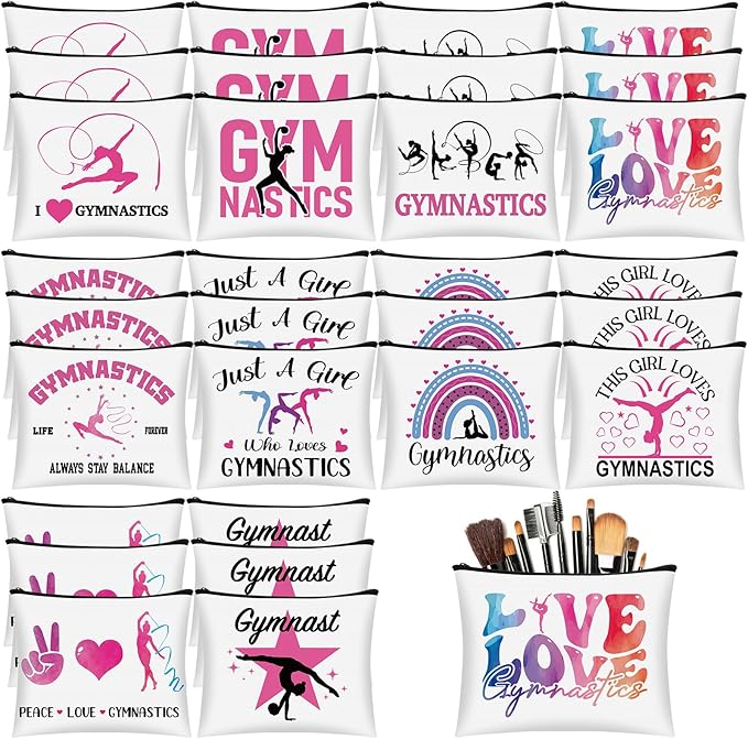 Kacctyen 30 Pcs Gymnastics Makeup Bag Inspirational Gymnastics Lover Gifts for Women Gymnast Cosmetic Bag Gymnast Stuff for Women Girls Coach Friend Coworker Birthday Party Favors