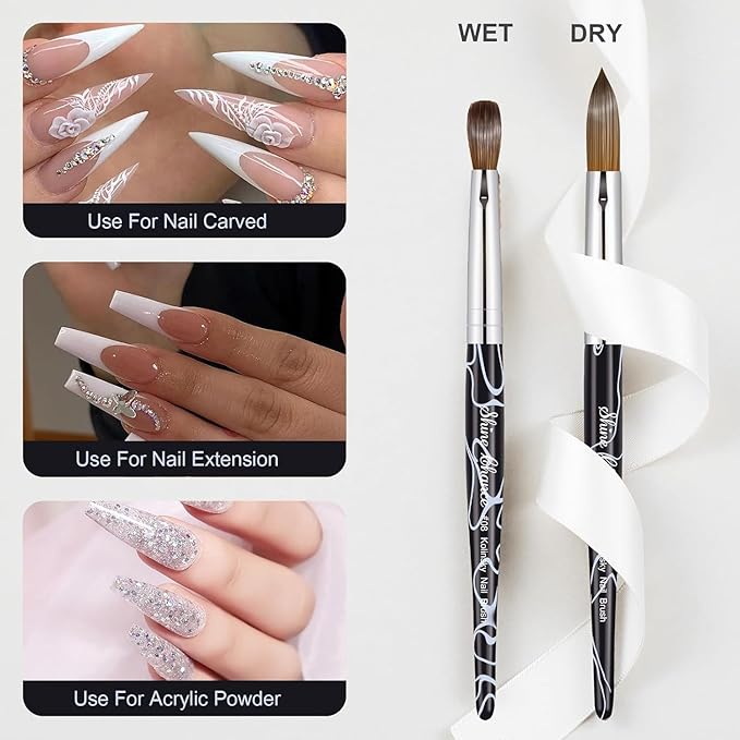 - đ ă100% Pure Kolinsky Sable Hairă: Our acrylic art nail brush selected finest pure kolinsky hair, natural and smooth, more flexible and softer, Better absorption of acrylic powders,Ideal acrylic application choice even for professional manicurist.