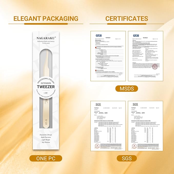 - High-quality Stainless Steel: Our NAGARAKU tweezers for eyelash extensions are handcrafted. They are made of high-strength stainless steel, which can resist most acids and other corrosive agents. The high - quality gold - plated coating not only provides an elegant appearance, offers an extra sheen, but also ensures the corrosion resistance and protects the tweezers from wear and tear