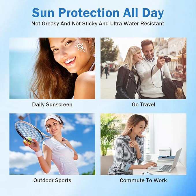 - γSPF FOR ALL SKIN TYPESγ - This hypoallergenic sunscreen is free of parabens, phthalates, oils, hydroxybenzone and dyes, and is water and sweat resistant for up to 80 minutes, making it ideal for use during outdoor activities.