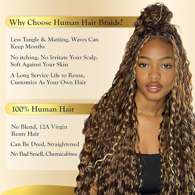 - 💝Please Note: Human hair should not be soaked in saltwater. Low-Maintenance & Wide Use: Our human hair for boho knotless braids allows you to enjoy beauty with minimal effort, keep your honey blonde 4/27 ombre braiding hair looking fresh longer. With proper care, Syrenlore hair gives you the freedom to enjoy braids for months to years. Perfect for any occasion, from casual looks to formal events like weddings, graduations, ceremonies, vacations, parties... Always have the perfect hairstyle at your fingertips!