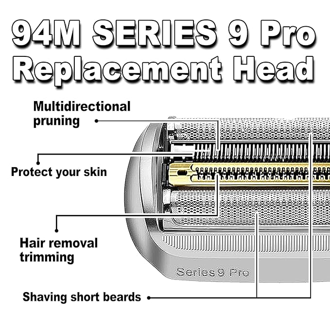 New Series 9 Pro 94M Electric Replacement Shaver Head Accessories blade Compatible with Braun Series 9 Pro Foil Shaver Replacement Heads 9290cc, 9291cc, 9370cc, 9376cc, 9293s, 9260s, 9295cc, 9385cc...