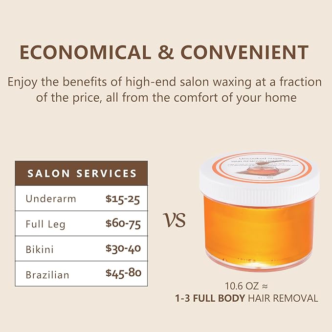 - [ Budget-Friendly Hair Removal ] - Skip salon prices and get salon-smooth skin at home. Our budget-friendly sugaring kit saves you serious cash without compromising quality