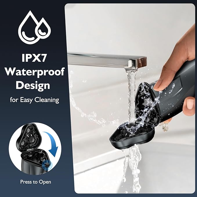 - Waterproof & Easy to Clean:This fully waterproof electric shaver is designed for both wet and dry grooming. Simply rinse it under water for quick and easy cleaning after use. It also includes a small trimmer for precise beard grooming and maintenance. The LED battery indicator helps keep track of power levels at all times.