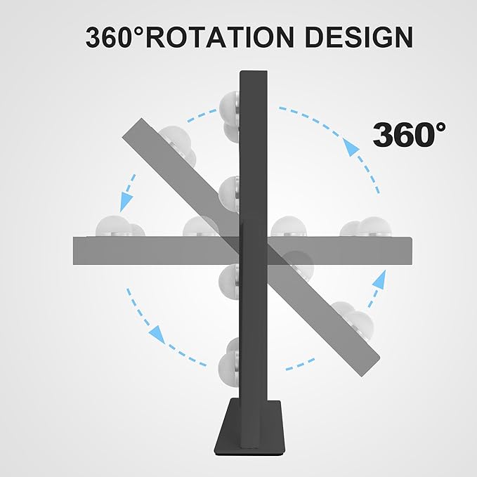 - 360° Free Rotation Desk Mirror: Our lighted makeup mirror can achieve 360° free rotation and can be fixed in any position as needed. The 12-inch high x 10-inch wide makeup mirror with lights allows you to see your entire face at once, helping you to put on delicate makeup