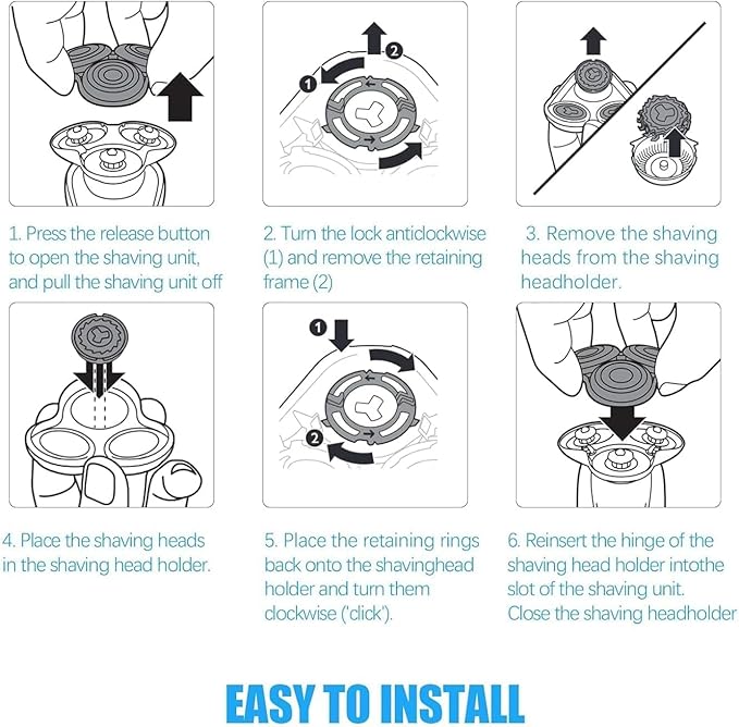 - 【RESET TO NEW】After installation, put a tiny drop of baby oil on each head, let the shaver run for 10 seconds. Replace your shaver heads every 12 months to reset your shaver to a new for best shaving performance.
