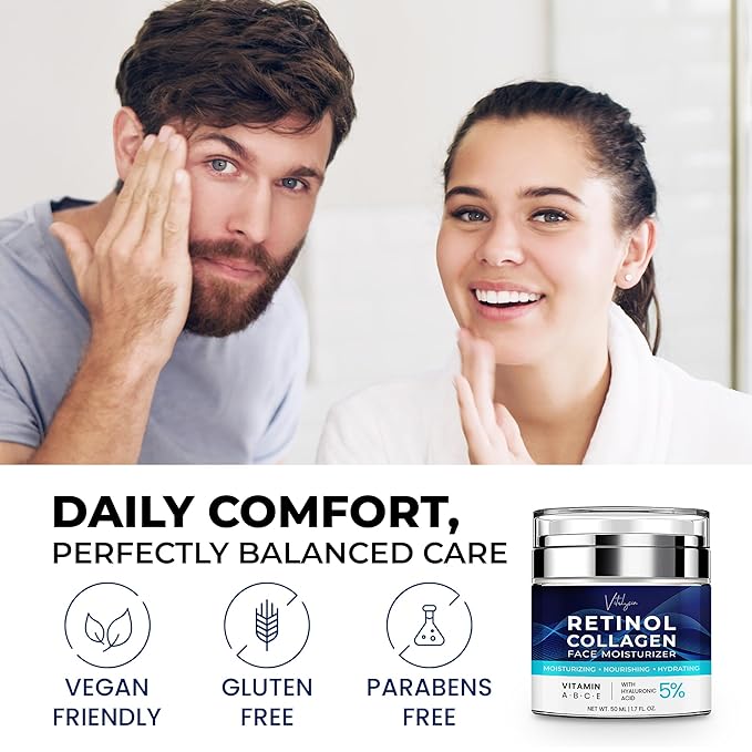 Face Moisturizer for Aging Skin: Wrinkle Cream for Older Women and Men 50 and 60 plus with Retinol, Collagen and Hyaluronic Acid – Facial Moisturizer for Mature Skin, 1.7 fl. Oz (Medium, Unscented)